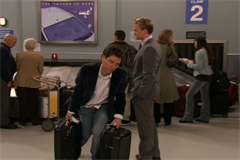 Barney: Ted, Ted, Ted. Right here! This is happening. Now you can either put your bags on the carousel now, or you can listen to me give you a really long speech convincing you to put the bags on the carousel. Your move. Ted, since the dawn of time mankind has struggled...
