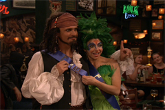 Carl: Ladies and gentlemen, the results are in. And the winners of this year's costume contest are Lily Aldrin as a parrot and Marshall Eriksen as a gay pirate.